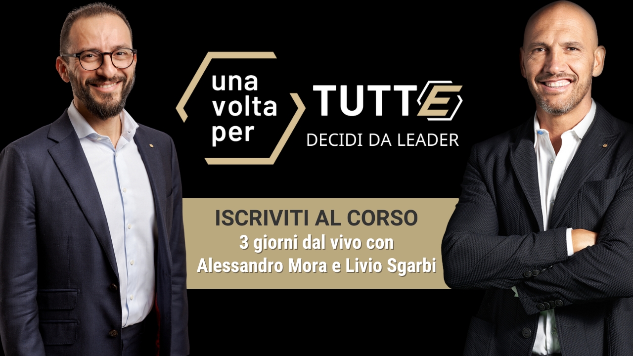 UNA VOLTA PER TUTTE è un evento formativo pieno di contenuti, e strumenti pratici che ti aiuteranno a prendere decisioni da Leader e a rinforzare il tuo carisma.